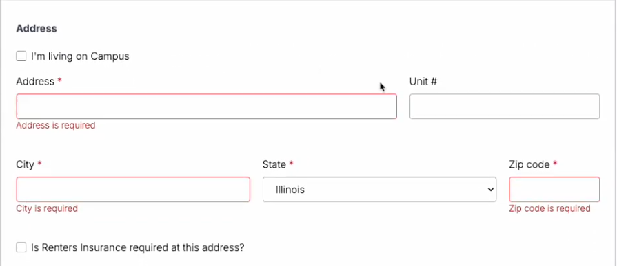 Step 4: Your current policy details will be shown. Click on the box next to ‘I’m living on Campus’ then enter the new address.